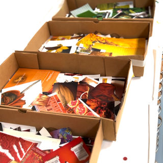 All materials, including curated collage materials, are provided. No flipping through magazine needed.